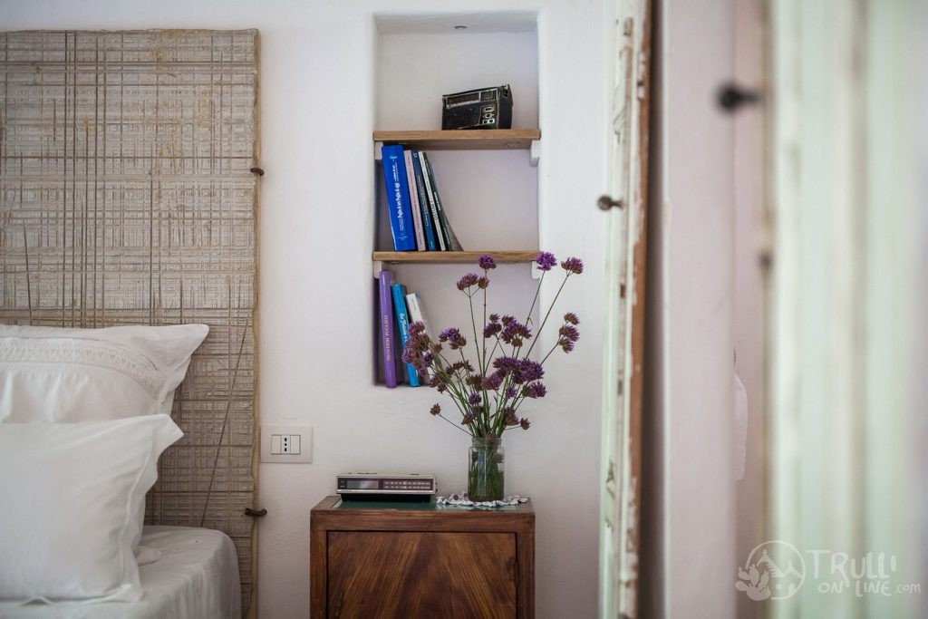 Inside the larger trullo cone is a meditation corner. A single room with ensuite bathroom is ideal for someone looking for peace and quiet, as well as elegance and comfort.