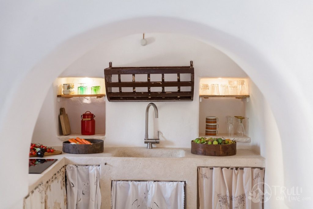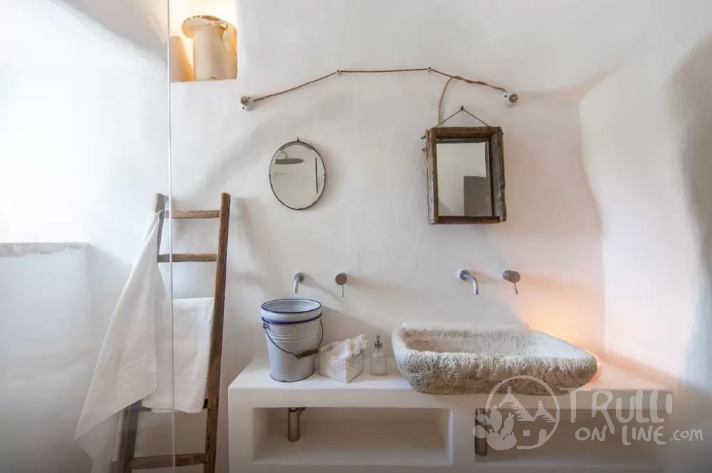 The Great Trullo comfortably sleeps up to 6 adults + 1 child. It has three double bedrooms (convertible into twin bedrooms if preferred); 3 bathrooms, one for each bedroom; a comfortable sitting area and a lounge area with a child-sized sofa bed; the kitchen and dining area are completely and perfectly furnished and equipped.