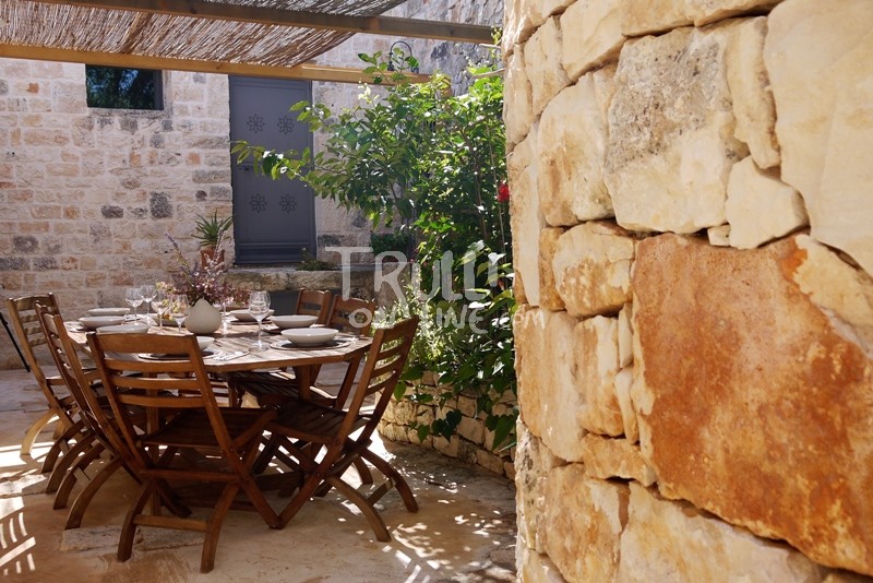 Descending a few stairs from this first great space (consisting of only Trulli), you enter the substantial open space Lamia which encompasses the kitchen and living room.